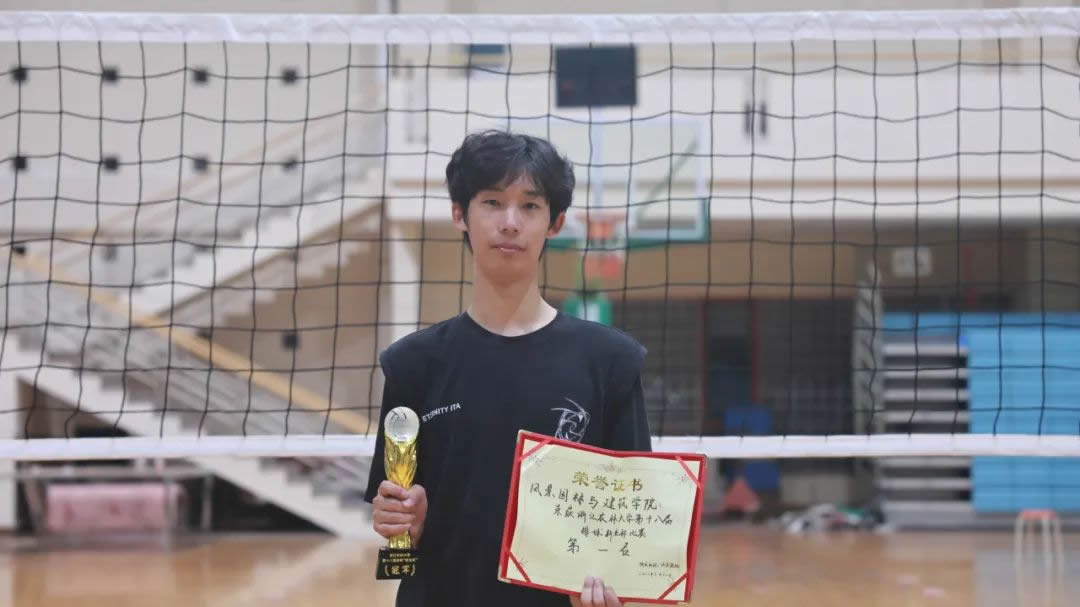 在赛场之外,他热衷于参与学院各类文艺活动,积极投身于各项学生事务。连续在2018-2019年度的新生才艺秀及毕业生晚会上登台表演,并以艺术团副团长的身份策划并参与了2020年的新生才艺秀。同时,他积极投身各类竞赛,屡次在省挑战杯及“互联网+”创新创业大赛中斩获殊荣。在考取我校城乡规划学研究生后,依然保持对学生工作的热情,报名并被聘任为太阳集团2138网址的兼职辅导员并担任研究生会干部。尽管课业与工作繁忙,但他始终不畏艰辛,始终以乐观积极态度去面对各种挑战。这一切的背后,离不开他在体育馆无数次拼搏的经历的支持。回顾在浙农林男排的六年时光,他表示:“排球给我的,远不止几张奖状,更有那群共度艰难的兄弟,以及永不言败、始终保持向上的意志,让我在人生道路上砥砺前行。”